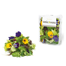 Ingredients: baby green lettuce, baby red lettuce, rocket, lamb’s lettuce, baby spinach, red chard, green mizuna, tatsoy, red mustard, pansy